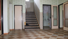 Vchodovými dverami sa vchádza do vstupnej chodby, oproti vchodovým dverám je WC. Vľavo sú dvere do haly z ktorej sa vchádza do dvoch izieb, kuchyne, kúpeľne a na poschodie. Z haly je taktiež východ do pivnice a zadnej časti dvora. Na poschodí sa nachádzajú tri samostatné izby, WC s umývadlom a vchod na terasu. Kuchyňa je spojená s jedálňou, v kuchyni je malá kuchynská linka. Interiér domu je v pôvodnom stave, takže si ho viete upraviť podľa Vášich predstáv. Elektroinštalácia a rozvody v dome sú v pôvodnom stave.