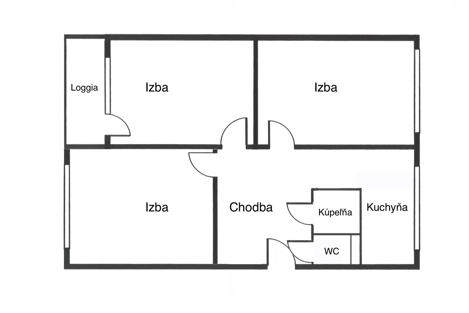 3-izbový byt sa nachádza na 7. poschodí z 8. V rámci rekonštrukcie boli vymenené okná na západnej strane bytu za plastové, loggia prešla renováciou. Okrem toho je byt v pôvodnom stave a čaká na kompletnú renováciu. Celková rozloha 79,11m² + loggia (cca 2,5m²) a pivničná kobka (cca 1,5m²). Dispozične pozostáva z vstupnej chodby, samostatnej toalety a kúpeľne, troch samostatných nepriechodných izieb a kuchyne. Na loggiu sa vychádza z jednej zo spální. Štedrý priestor, ktorý tento byt ponúka je vhodný na rekonštrukciu a teda aj prípadnú zmenu dispozície podľa vlastných predstáv.