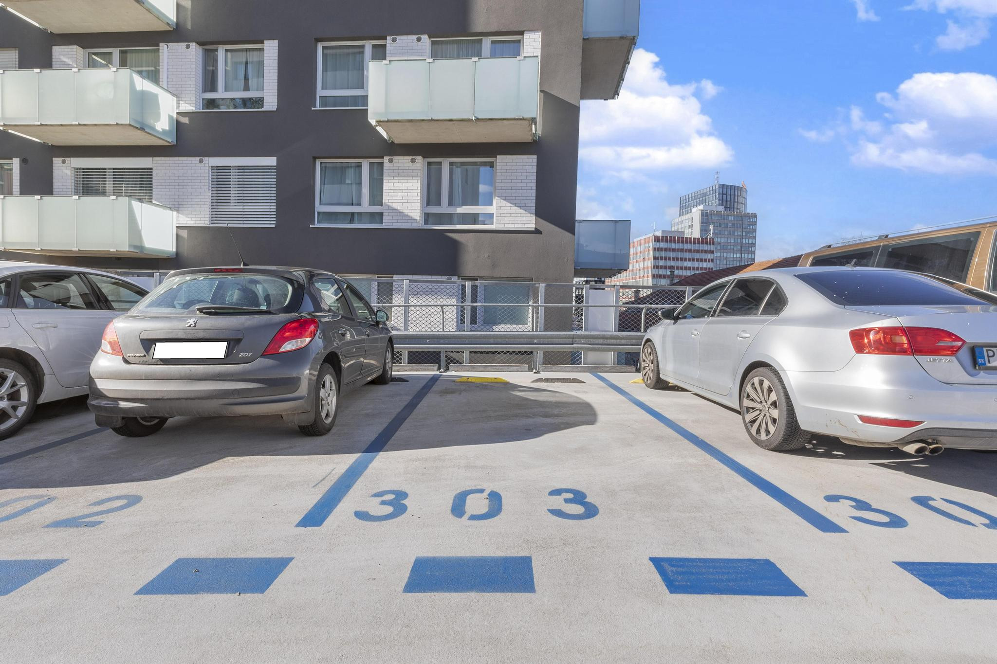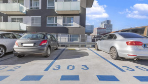 Súkromné parkovacie miesto sa nachádza na 3. podlaží parkovacieho domu, z ktorého sa dostanete plynulo na 3. poschodie bytového domu. Vjazd do parkovacieho domu je vybavený garážovou bránou na diaľkové ovládanie.