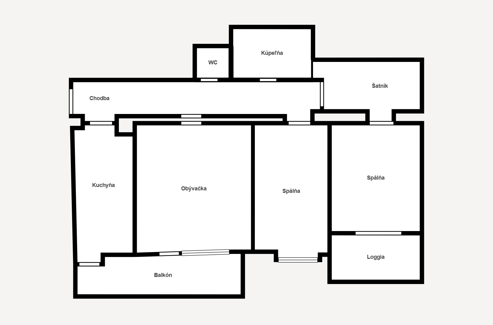 3-izbový byt sa nachádza na 2. poschodí, dispozične pozostáva z predsiene, kúpeľne, samostatného WC, kuchyne, walk-in šatníka, troch samostatných obytných izieb, balkón, loggia. a pivničná kobka v suteréne. Z jednej izby je prístupná loggia uzatvárateľná posuvnými oknami. Kuchyňa s vedľajšou izbou sú prepojené veľkým balkónom s praktickou veľkou markízou na mieru. Dispozícia bytu je usporiadaná, všetky miestnosti sú dostupné z dlhej vstupnej chodby. Pôdorys je súčasťou fotodokumentácie. Byt prešiel čiastočnou rekonštrukciou v roku 2000, potom 2011 a najnovšia časť kuchynskej linky je z roku 2022. Aktuálne je čerstvo vymaľovaný.